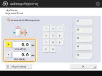 | Tryck på <X> eller <Y> för att ange längden på varje sida med sifferknapparna. |