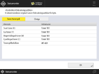 Vi rekommenderar att du kontrollerar återstående tonernivå innan du skriver ut ett stort arbete för att kontrollera om en ny tonerpatron behöver förberedas.