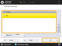 Om systemansvarigs-ID och PIN-kod för klientmaskinen skiljer sig från värdmaskinen, kan enhetsinformation inte distribueras. Ändra systemansvarig-ID och PIN-kod Det kan ta flera minuter att förbereda för distribuering av enhetsinformation eller för att uppdatera information som har tagits emot. Stäng inte av maskinen innan den är klar med förberedelserna eller uppdateringen. Det kan leda till att maskinen inte fungerar korrekt. Skärmen för inställningsuppdatering visas på klientmaskinen som tar emot enhetsinformation och inga åtgärder kan utföras förrän uppdateringen är klar. Vi rekommenderar att du distribuerar enhetsinformation vid en tidpunkt utan användare. |