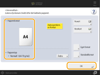 Kontrollera pappersformat och papperstyp och tryck på <OK>.