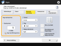 2 | Ange det första referensnumret. ![]() Ange i inmatningsfältet <Startnummer> genom att använda sifferknapparna. |
