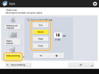 2 | Tryck på <Centrera> eller <Sidor>, och ange varje raderingsbredd. |