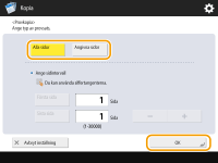 Om du vill kopiera specifika sidor, välj <Angivna sidor>. Ange sidor genom att trycka på <Startsida> eller <Sidslut>.