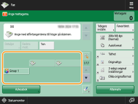 Ange mottagare på skärmbilden med grundläggande faxfunktioner.
