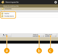 1 | Välj en fil och tryck på <Redigera fil> <Radera>. |