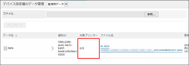 [デバイス設定値のデータ管理]ページのリストで、デバイス設定値データの[対象プリンター]をクリックします。