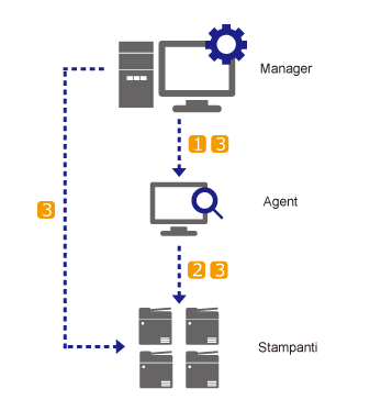 In ciascuno dei seguenti casi, una stampante scarica l'applicazione e la licenza dal Manager. Quando la stampante è impostata per comunicare solo tramite un indirizzo IPv6 Quando Manager e Agent sono in esecuzione sullo stesso computer |