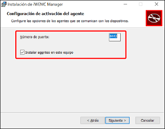 Introduzca el número de puerto para acceder al agente desde el Manager en [Número de puerto].