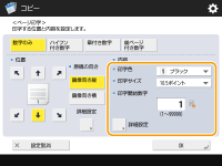 ![]() | ページ番号、管理番号、日付などの印字を付けてコピーができます。「社外秘」などのスタンプを付けることも可能です。たとえば、複数部数の資料を配布する場合に管理しやすくなります。 |