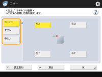 用紙の角の1か所をホチキスで留める場合は<コーナー>を選び、留める位置を選びます。