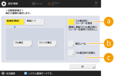 トナー残量が少ないときは、補正しても完全には改善されないことがあります。 <フル補正>または<クイック補正>を1度も実行していない状態で本機を稼働させていると、電源を入れたあとの1枚目のプリントに時間がかかる場合があります。 |