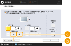 <->指標の中央のラインが用紙の縁よりも内側にある場合に押します。入力された数値に応じて、画像が搬送方向に対して前進します。