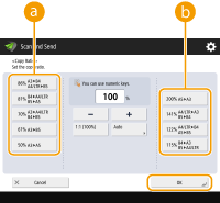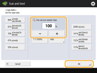 When the screen for selecting the original thickness appears, select the thickness of the original being used. (Appears if <Original Thickness Defaults for Scan from Feeder> is set to <Always Specify>. <Original Thickness Defaults for Scan from Feeder>)