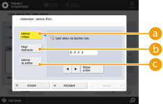 Spécifiez une plage d'adresses IP. Saisissez une adresse distincte pour <Première adresse> et <Dernière adresse>. Il n'est pas possible de saisir des adresses IPv6.