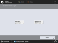 (Réglages/Enregistrement).1 | Spécifiez le nom d'utilisateur et le mot de passe. Entrez le nom d'un utilisateur avec un privilège d'administrateur, et appuyez sur <Suivant>. Établissez le mot de passe et appuyez sur <OK>. |