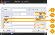 immettere il nome della destinazione e premere <OK>.![]() (Le voci visualizzate a schermo possono differire in base al modello e alle opzioni.) |