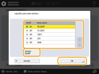 Premere <Specifica per nome servizio> per utilizzare i nomi dei servizi quando si specificano le porte a cui si applica l'IPSec. Selezionare il servizio nell'elenco, premere <Servizio On/Off> per impostarlo su <On> e premere <OK>.