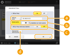 Impostare <Utilizzo Proxy> su <On>, configurare le impostazioni necessarie e premere <OK>.
