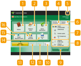 Premendo <Scansione e invio> (Schermata <Home>), viene visualizzata la schermata delle funzioni di base per la scansione.