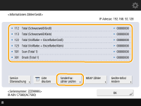 Wenn Sie die Gesamtanzahl der Seiten prüfen möchten, die gescannt und gesendet wurden, drücken Sie <Sende/Fax zähler prüfen>.