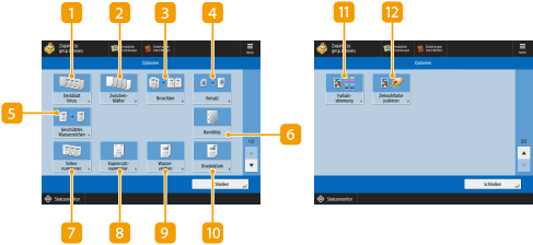 Je nach Funktion finden Sie nähere Einzelheiten unter der Funktion <Kopieren>. |