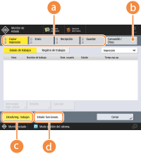 Estado operativo del equipo![]() (Los elementos que aparecen en pantalla pueden ser distintos según el modelo y las opciones.) |