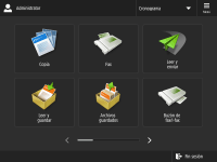 Pulse , que aparece en la pantalla de <Inicio> y en la pantalla Funciones básicas, para personalizar la pantalla, reorganizando botones o creando una tecla de acceso directo. Personalizar la pantalla táctil![]() Puede cambiar las opciones de visualización en pantalla, como por ejemplo la pantalla que aparece justo después de encender el equipo, y si aparece el mensaje de papel y tóner restantes. <Opciones de visualización> Puede establecer qué pantalla debe mostrarse cuando haya transcurrido un tiempo sin que se realice ninguna operación. <Función tras reinicio automático> |