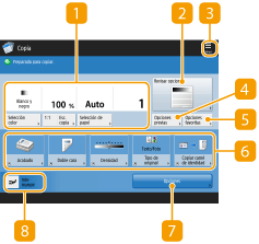 Cambie la pantalla Funciones básicas de copia a la "Pantalla de copia exprés" para poder acceder rápidamente a cada elemento de configuración. Cambiar las opciones rápidamente (Pantalla de copia exprés) |