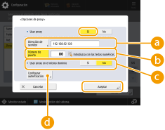 Active <Usar proxy> (<Sí>), configure las opciones necesarias y pulse <Aceptar>.