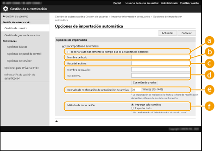 Puede especificar los datos que se importarán y actualizar la información de usuario de forma manual.