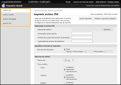 Utilizando la IU remota, se pueden imprimir archivos guardados en un ordenador o red directamente desde el equipo sin utilizar el controlador de impresora. No tiene que abrir los archivos en el ordenador para imprimir.