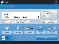 Pulse , que aparece en la pantalla de <Inicio> y en la pantalla Funciones básicas, para personalizar la pantalla, reorganizando botones o creando una tecla de acceso directo. Personalizar la pantalla táctil![]() Puede cambiar las opciones de visualización en pantalla, como por ejemplo la pantalla que aparece justo después de encender el equipo, y si aparece el mensaje de papel y tóner restantes. <Opciones de visualización> Puede establecer qué pantalla debe mostrarse cuando haya transcurrido un tiempo sin que se realice ninguna operación. <Función tras reinicio automático> |
