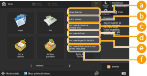 En esta sección se describe qué puede personalizarse y gestionarse en los elementos mostrados cuando se pulsa <Menú> en la pantalla <Inicio>.