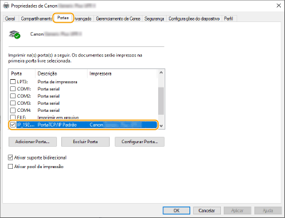 Certifique-se de que a porta correta é selecionada para a impressora.
