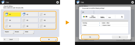 Pressione <Copy> e especifique as configurações que deseja registrar.