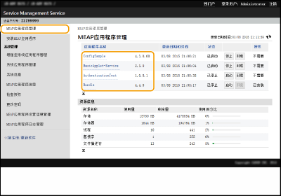单击[MEAP应用程序管理],然后单击应用程序以管理授权。