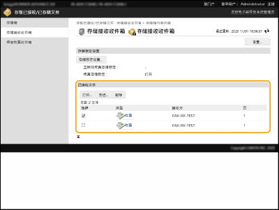 可以使用“远程用户界面”打印、发送或删除存储在“存储箱”中的文件,或暂时存储在“传真/互联网传真收件箱”中的传真和互联网传真。
