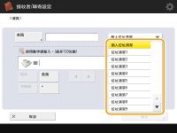 輸入接收者名稱,並且按 <確定>。![]() (畫面顯示的項目可能由於機型和選購配件而不盡相同。) |