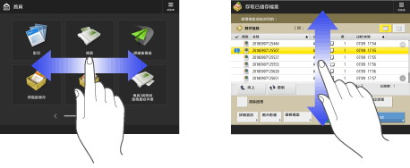 在某些畫面上,您可以在畫面上向上/向下或向左/向右撥動手指來切換頁面或捲動,操作方式和智慧型手機一樣。