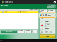 若要在掃描後從 <單鍵> 畫面選擇接收者,請對於 <預設螢幕> 設定 <單鍵>。可縮減將掃描文件傳送到同一個接收者所需的作業。 <預設螢幕>在伺服器機器的單鍵按鈕中註冊的接收者會在下列情況更新: 在用戶端機器上送出傳真工作時 在用戶端機器上按下  (重置) 時 在用戶端機器上啟用自動重設時 |