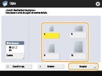 Es poden copiar alhora un màxim d'un conjunt. Col·loqueu l'original al vidre de còpia. No podeu utilitzar el mode de pòster quan l'original és a l'alimentador. No es pot crear un cartell amb els tipus de paper següents: Paper de mida personalitzada Sobres Transparències (Per obtenir més informació sobre els tipus de paper compatibles amb l'equip, vegeu Paper admès.) Si establiu <Cartell> quan el mode de color està establert en <Auto (Color/B/N)>, <Selecció color> s'estableix automàticament en <Tot color>. Funcions de còpia bàsiques Escala de còpia i opcions de paperLa taula següent indica una estimació de la mida original i la relació de còpia per a pòsters de diferents mides i la mida de paper òptima i el nombre de fulls que s'han d'utilitzar. Consulteu aquesta taula quan introduïu l'escala de còpia i quan especifiqueu la mida del paper i el nombre de fulls.