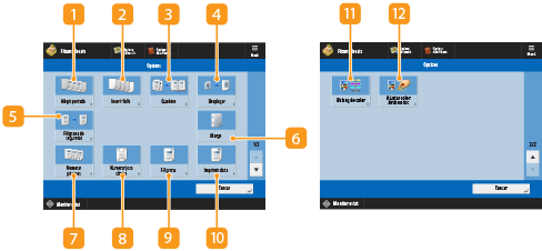 | <Mostra d'impressió> només es mostra si establiu alhora que es facin diverses impressions i una de les opcions següents. Tingueu en compte que les funcions disponibles poden variar en funció del model i de les opcions instal·lades. <Classificar (per jocs)> <Desplaçar> <Girar 90 graus> <Grapar + Classificar> <Quadern> <Portada> <Inserir fulls> <Fusionar fitx. i impr.> quan se seleccionen diversos fitxers |
