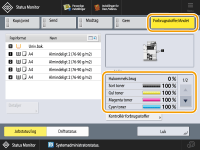 Du kan tjekke den resterende mængde af forbrugsstoffer fra Remote UI (Brugerinterface til fjernbetjening). Kontrol af maskinens status |