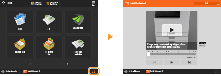 Når tromleenhedens levetid er næsten udløbet, vises der en meddelelse, der beder dig om at udskifte den tromleenhed, der vises nederst på skærmen. Tryk på ikonet nederst til højre på skærmen, og følg instruktionerne på skærmen for at udskifte tromleenheden.