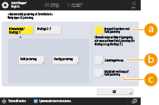 Hvis farverene på det printede billede adskiller sig fra originalenJuster gradueringen i henhold til trinene herunder og i henhold til papiret, og de indstillinger, der bruges i forbindelse med printning. Til print på kraftigt papir 1. Brug tynd, almindeligt eller genbrugspapir, og juster med <Tyndt/Almindeligt/Genbrugspapir>. 2. Brug kraftigt papir og juster med <Kraftigt>. For begge gælder følgende: For at printe i superfin, tyndt, almindelige eller genbrugspapir Hvis <Prior. af hastigh./billedkval. f. Superfine (1200 dpi)> er indstillet til <Kvalitetsprioritering> <Prior. af hastigh./billedkval. f. Superfine (1200 dpi)> 1. Brug tynd, almindeligt eller genbrugspapir, og juster med <Tyndt/Almindeligt/Genbrugspapir>. 2. Brug tynd, almindeligt eller genbrugspapir, og juster med <Tyndt/Alm./Genbrug(1200dpi)>. |