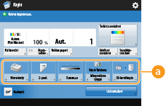Perustoimintojen näytössä olevia asetuspainikkeita (kopio, faksi ja skannaus) voi vaihtaa muihin asetuspainikkeisiin kohdassa <Lisäasetukset>. Sijoittamalla usein käytetyt asetuspainikkeet perustoimintojen näyttöön voit käyttää toimintoja tehokkaammin. Voit lisäksi näyttää kullekin käyttäjälle mukautetun perustoimintojen näytön kirjautumalla sisään henkilökohtaisen todentamisen hallinnalla.