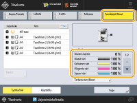 Voit tarkistaa jäljellä olevien tarvikkeiden määrän Remote UI (Etäkäyttöliittymä) -sovelluksesta. Laitteen tilan tarkistaminen |