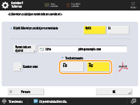 Voit tallentaa lähetetyn asiakirjan kopion lähettämällä sen skannauksen perustoimintonäytössä useille vastaanottajille, myös faksivastaanottajalle. Jotta näet faksivastaanottajan skannauksen perustoimintonäytössä, <Salli faksi skannausja lähetystoiminnassa> -asetukseksi on määritettävä <Kyllä>. <Näytä faksitoiminto>