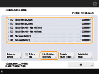 Voit tulostaa luettelon, jossa näkyy kopiointiin, tulostukseen, skannaukseen ja faksaukseen käytetyt sivumäärät. Tässä näytössä voit myös tarkistaa kunkin MEAP-sovelluksen laskuritiedot. Valitse vaiheen 2 näytössä <Tarkista MEAP-laskuri>. Jos valitset samassa näytössä <Laitetiedot/Muut> <Laitekokoonpano>, voit tarkistaa laitteeseen asennetut lisävarusteet sekä tallennuslaitteen tietojen salaukseen liittyvän turvasirun versiotiedot.Tietoja laskureista antaa käyttämäsi jälleenmyyjä tai huoltoedustaja. Jos haluat tietoja kohteesta <Valvontapalvelu>, ota yhteyttä jälleenmyyjääsi tai huoltoedustajaasi. |