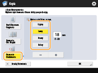 1 | Naciśnij na <Usuń Obramow. Oryginału> i ustaw <Rozm.Oryginału>. ![]() Jeżeli rozmiar wyświetlany w pozycji <Rozm.Oryginału> różni się od rozmiaru umieszczonego w urządzeniu oryginału, naciśnij przycisk <Zmień>, aby wybrać rozmiar. |